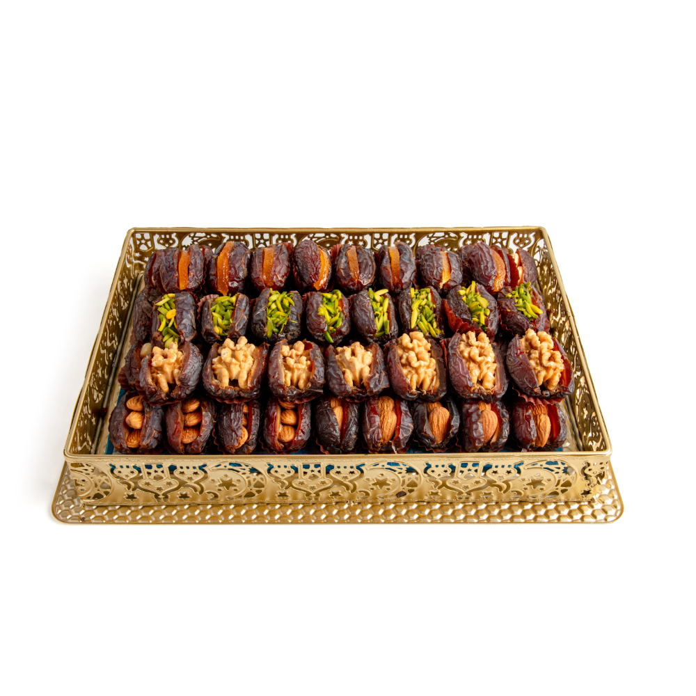 Product DescriptionElevate your gifting with the Daima Acrylic Gold Tray Stuffed Date Assorted Set (1700gm). This premium collection includes a variety of stuffed dates, filled with crunchy nuts, rich creams, and sweet delights. Perfect for festive gatherings, corporate gifts, or sharing with family and friends.Reviews0 Back Elevate your gifting with the Daima Acrylic Gold Tray Stuffed Date Assorted Set (1700gm). This premium collection includes a variety of stuffed dates, filled with crunchy nuts, rich creams, and sweet delights. Perfect for festive gatherings, corporate gifts, or sharing with family and friends. Write a review There are no reviews yet Free Shipping Cash On Delivery Money Back Guarantee 24/7 Support