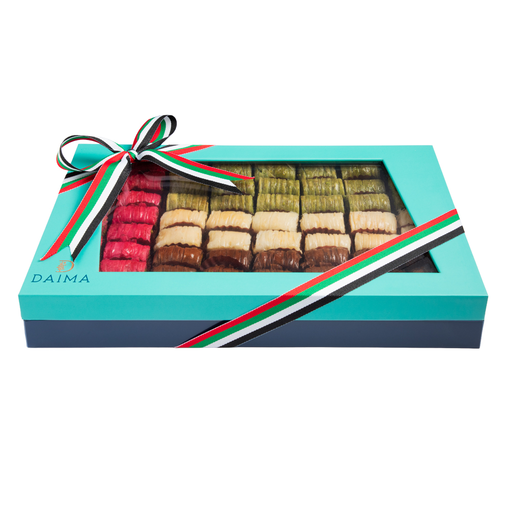 The Daima Asabe National Day 800G collection is crafted to honor the spirit of the UAE with elegance and exceptional taste. This limited-edition selection brings together Daima’s finest Asabe chocolates, known for their smooth texture, premium ingredients, and irresistible flavor.