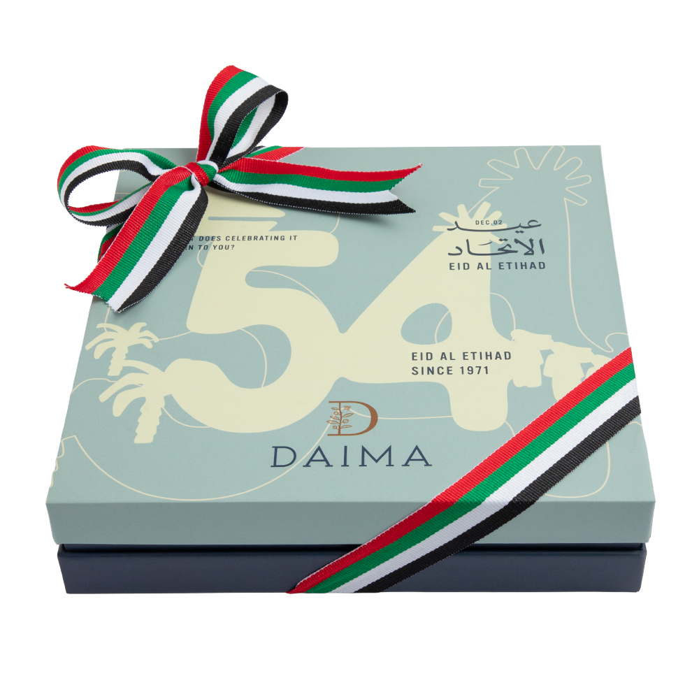 Product DescriptionCelebrate the spirit of the UAE with the Daima Assorted Chocolate National Day 25 Square 180G. This special edition box is filled with Assorted Praline Chocolate National Day 2025, crafted from high quality ingredients and prepared to offer a rich, smooth, and indulgent flavor in every bite.The c...Reviews0 Back Celebrate the spirit of the UAE with the Daima Assorted Chocolate National Day 25 Square 180G. This special edition box is filled with Assorted Praline Chocolate National Day 2025, crafted from high quality ingredients and prepared to offer a rich, smooth, and indulgent flavor in every bite.The chocolates are arranged in a stylish square box designed especially for National Day, making it an ideal choice for personal celebrations, gifting, office sharing, or adding a touch of festivity to any gathering. Each praline is made to deliver a luxurious taste experience, perfectly capturing the elegance and pride of the UAE. Write a review There are no reviews yet Free Shipping Cash On Delivery Money Back Guarantee 24/7 Support
