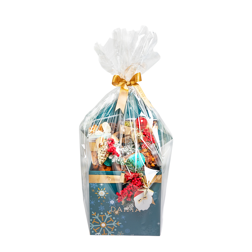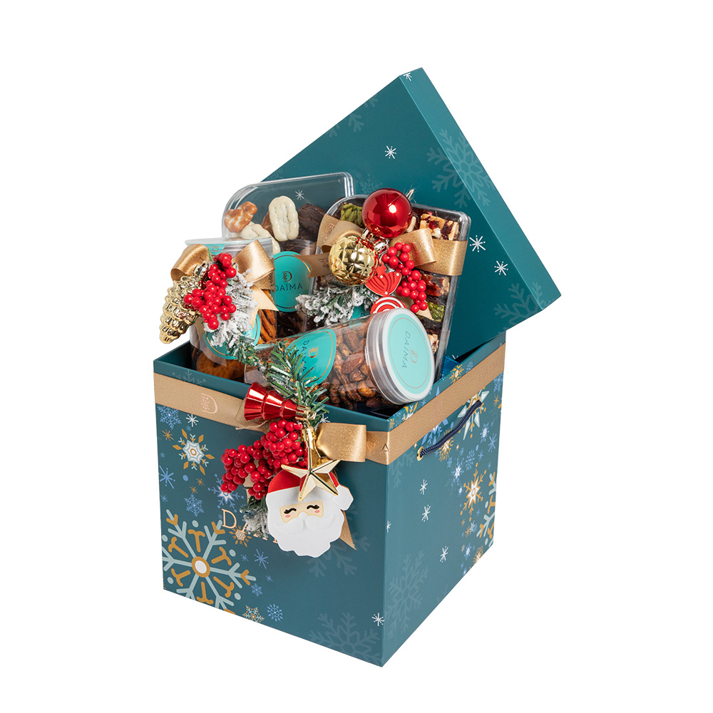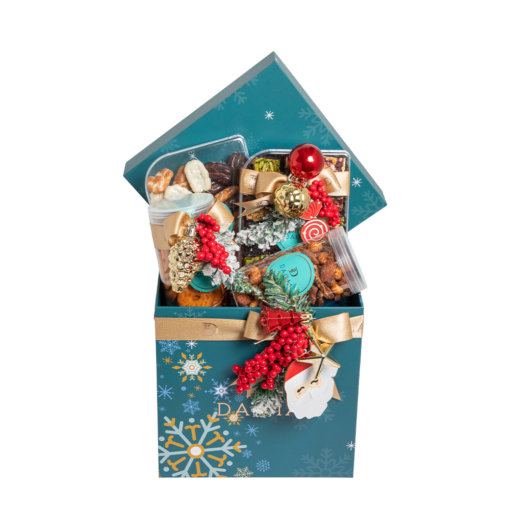 Product DescriptionDaima Christmas Special Gift Hamper Small 770G is designed to elevate your festive celebrations with a balanced mix of sweet and savoury delights. The hamper features 200G of dragee pecan assorted prepared with a smooth chocolate coating, 100G of crisp baked pretzels in assorted flavours, 220G of...Reviews0 Back Daima Christmas Special Gift Hamper Small 770G is designed to elevate your festive celebrations with a balanced mix of sweet and savoury delights. The hamper features 200G of dragee pecan assorted prepared with a smooth chocolate coating, 100G of crisp baked pretzels in assorted flavours, 220G of BBQ seasoned mixed nuts, and PP Stuffed Dates Ajwa Jumbo Bar Assorted 250G. Thoughtfully curated for gifting, sharing, and entertaining, this hamper captures the warmth and indulgence of the holiday season. Write a review There are no reviews yet Free Shipping Cash On Delivery Money Back Guarantee 24/7 Support