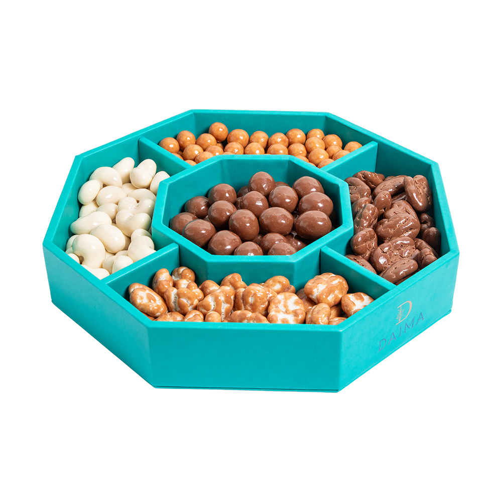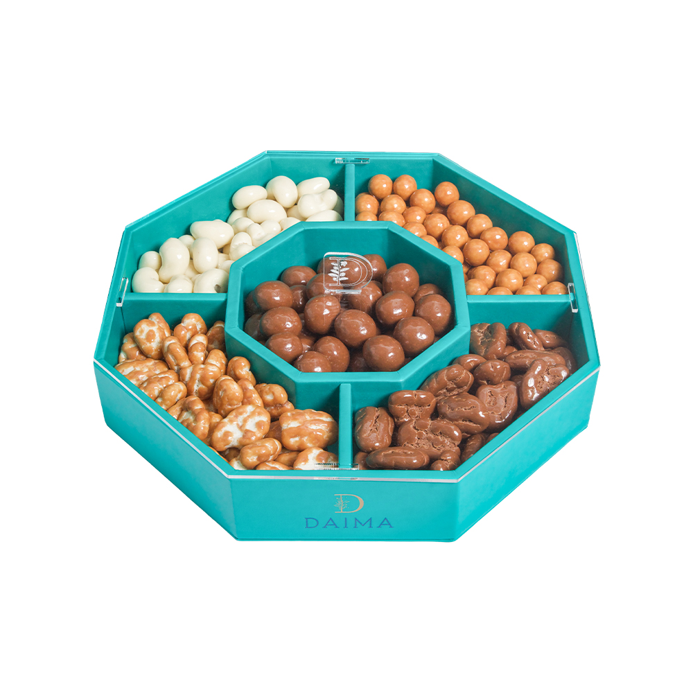 The Daima Dragee Chocolate Octagonal Tray 5 Set 1190G is a refined chocolate selection presented in a stylish octagonal tray. Designed for chocolate connoisseurs, this set offers a rich variety of dragee chocolates crafted with premium ingredients and balanced flavours.