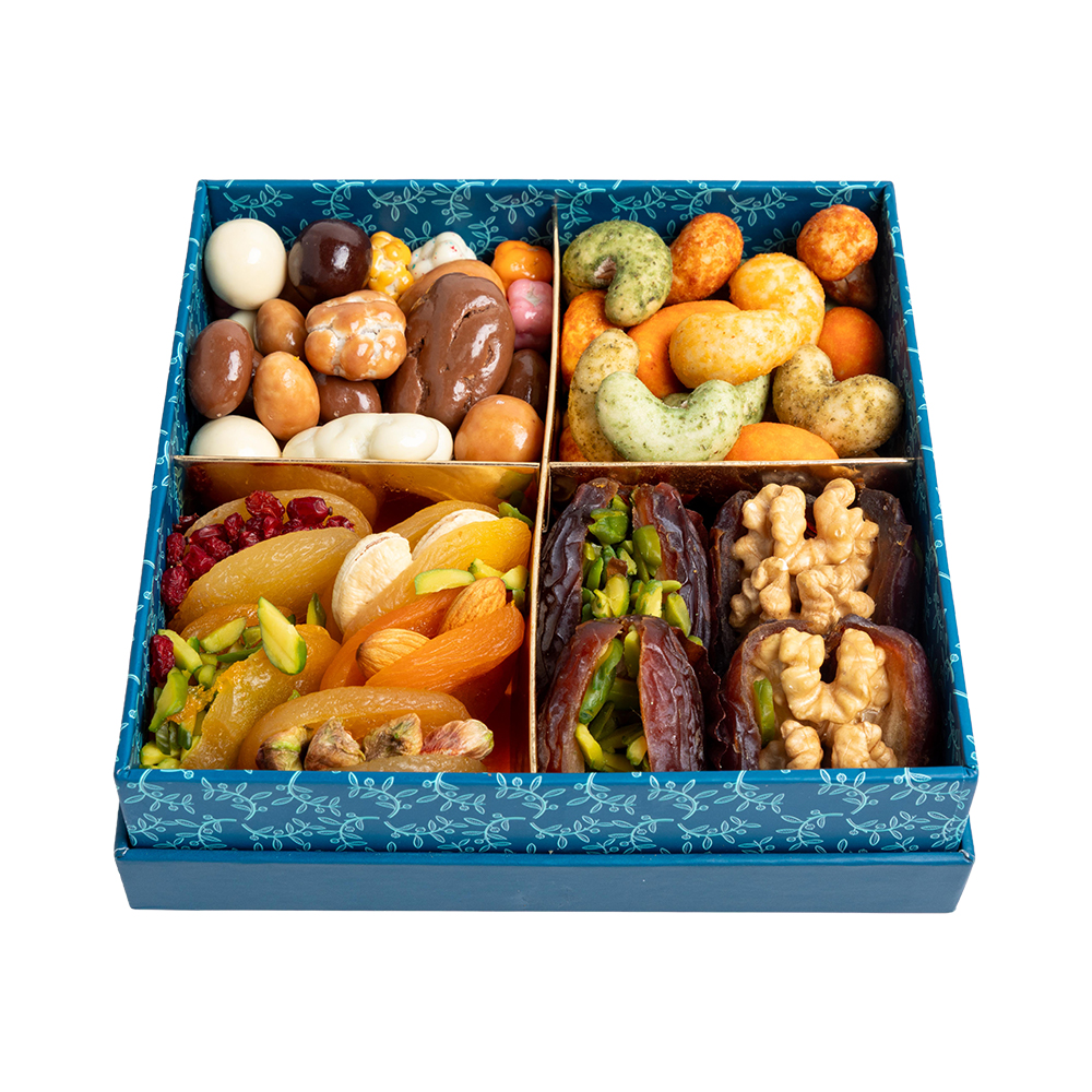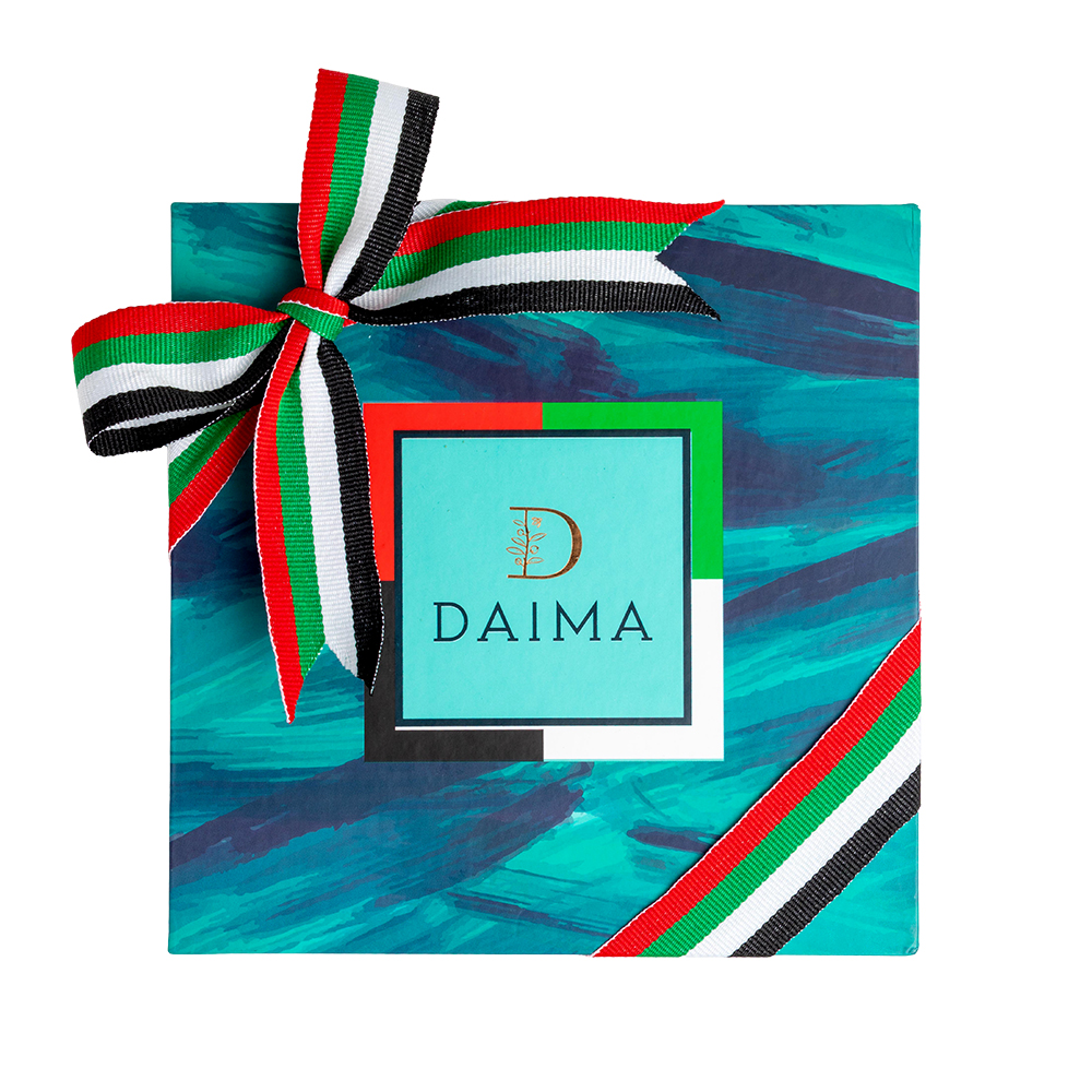 Product DescriptionCombining indulgence and craftsmanship, this elegant square box celebrates UAE National Day with a blend of Daima’s finest treats - crunchy cashew dragees, jumbo stuffed apricots, and an assortment of nuts and fruits coated in chocolate. A perfect gift for every occasion.Reviews0 Back Combining indulgence and craftsmanship, this elegant square box celebrates UAE National Day with a blend of Daima’s finest treats - crunchy cashew dragees, jumbo stuffed apricots, and an assortment of nuts and fruits coated in chocolate. A perfect gift for every occasion. Write a review There are no reviews yet Free Shipping Cash On Delivery Money Back Guarantee 24/7 Support
