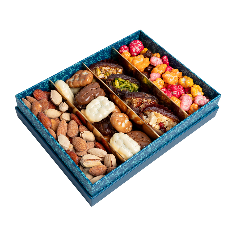 Product DescriptionThis refined rectangular box brings together Daima’s signature creations - from jumbo stuffed Majdool bars and crunchy pecan dragees to roasted Kloubat nuts and tangy cranberry assortments. A celebration of flavor and craftsmanship for UAE National Day and beyond.Reviews0 Back This refined rectangular box brings together Daima’s signature creations - from jumbo stuffed Majdool bars and crunchy pecan dragees to roasted Kloubat nuts and tangy cranberry assortments. A celebration of flavor and craftsmanship for UAE National Day and beyond. Write a review There are no reviews yet Free Shipping Cash On Delivery Money Back Guarantee 24/7 Support