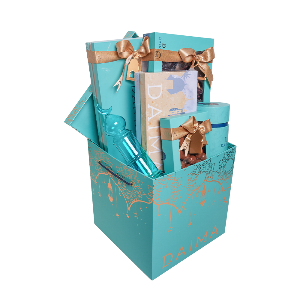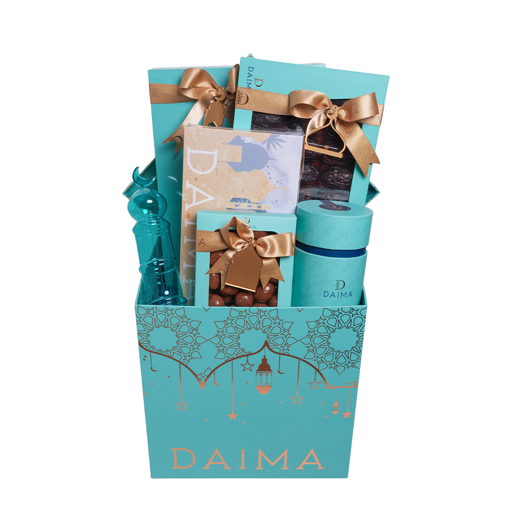 Product DescriptionDaima Ramadan Special Gift Box Hamper Medium is a thoughtfully curated collection designed to elevate Ramadan hospitality and gifting. This medium sized hamper brings together premium dates, traditional sweets, artisan coffee, and indulgent chocolate selections in one elegant presentation.The ham...Reviews0 Back Daima Ramadan Special Gift Box Hamper Medium is a thoughtfully curated collection designed to elevate Ramadan hospitality and gifting. This medium sized hamper brings together premium dates, traditional sweets, artisan coffee, and indulgent chocolate selections in one elegant presentation.The hamper includes assorted stuffed dates 360gm, hand roasted Dubai coffee 250gm, milk chocolate pistachio with kunafa 400gm, assorted maamoul 600gm, and Majdool jumbo dates 600gm. Each item is carefully selected to reflect authentic flavors and seasonal indulgence. Write a review There are no reviews yet Free Shipping Cash On Delivery Money Back Guarantee 24/7 Support