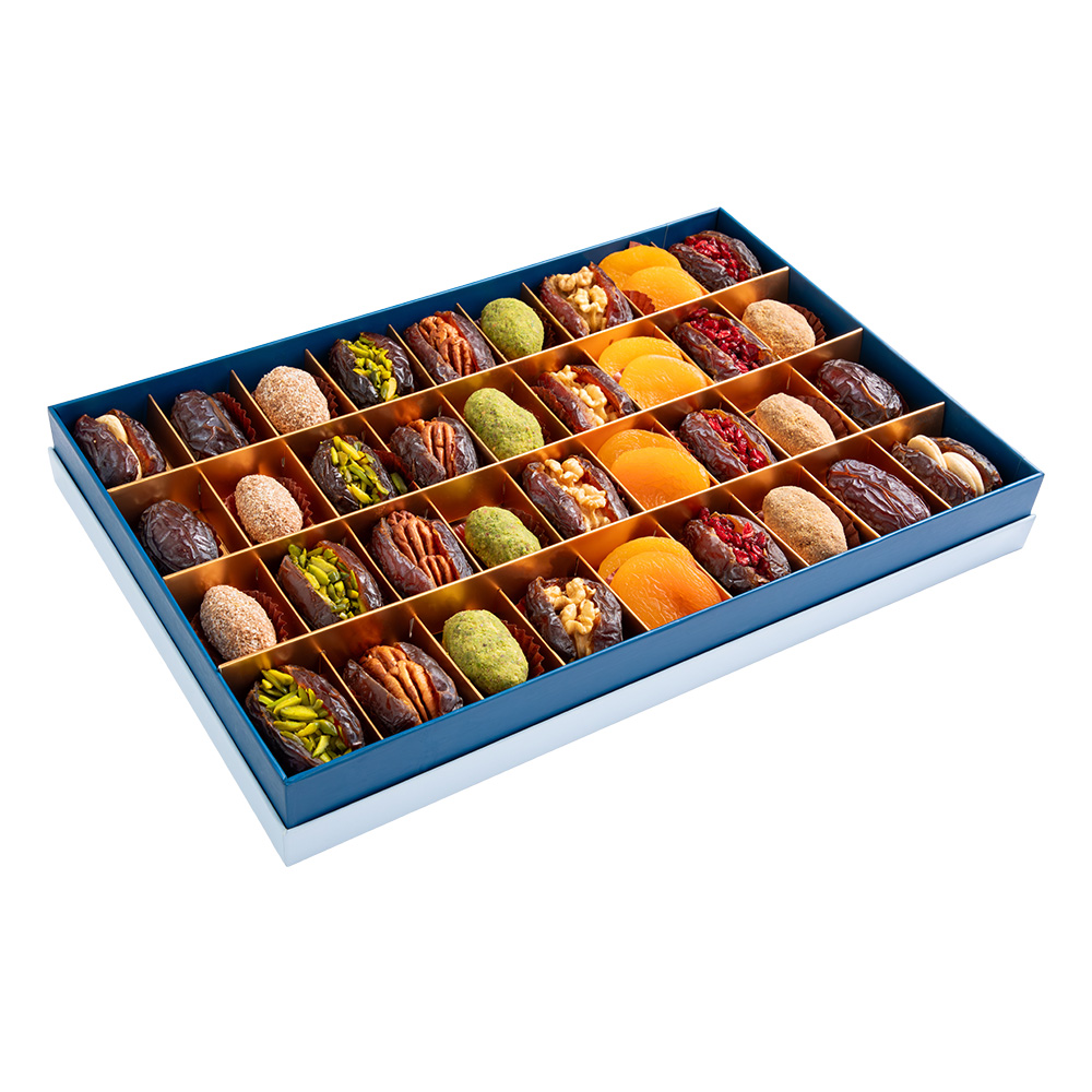 Daima Ramadan 2026 Stuff Dates Assorted 36 Set 1090G is a rich and abundant selection crafted for Ramadan celebrations. This set brings together classic Madjool dates, assorted stuffed dates, chocolate flavored dates, and dried apricots to create a diverse and indulgent tasting experience.