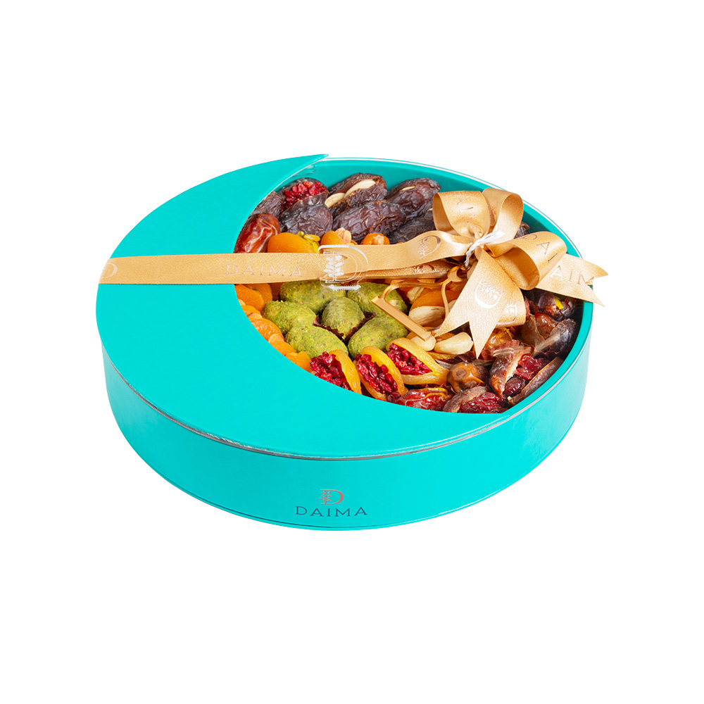 Presented in an elegant leather round moon tray, it is designed for grand gatherings, festive occasions, and premium gifting. Each piece reflects Daima’s dedication to quality, balance, and craftsmanship, making this tray a statement of generosity and sophistication.